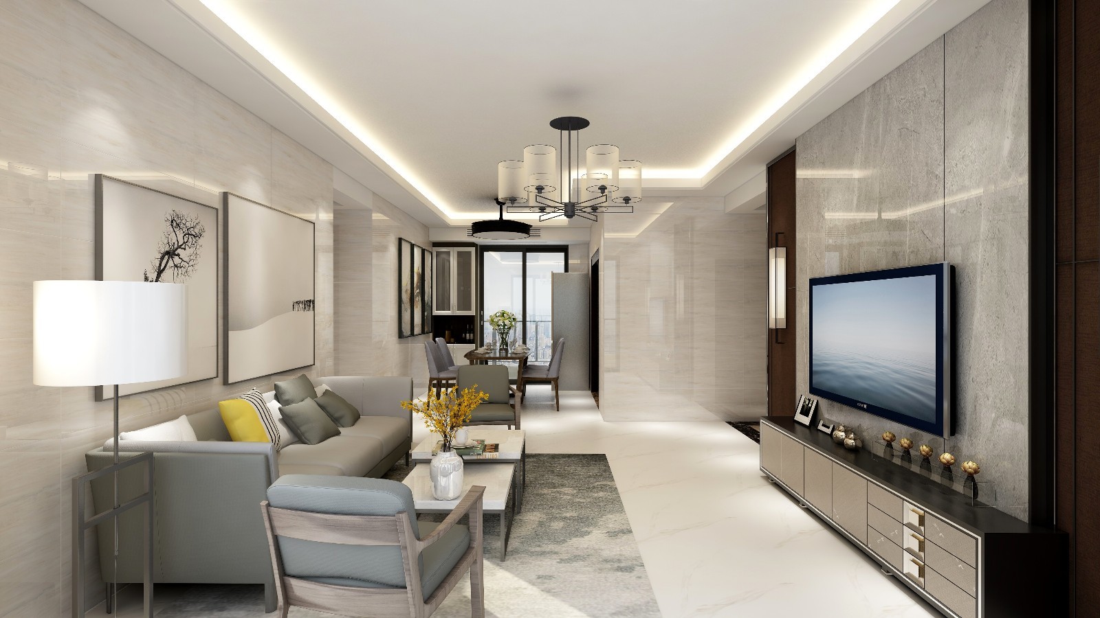 主人房墙面刷白色,搭配灰色系瓷砖和家居,点缀部分木系,空间简洁大方也不显得累赘。
