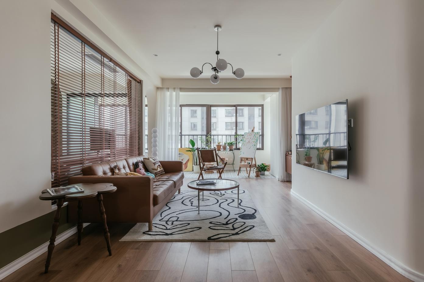 客厅的硬装并不复杂, “奶里奶气”的墙漆比纯白更显温柔, 为整个空间包裹上一层暖意; 焦糖色单品的错落点缀, 仿佛咖啡般浓郁醇香。