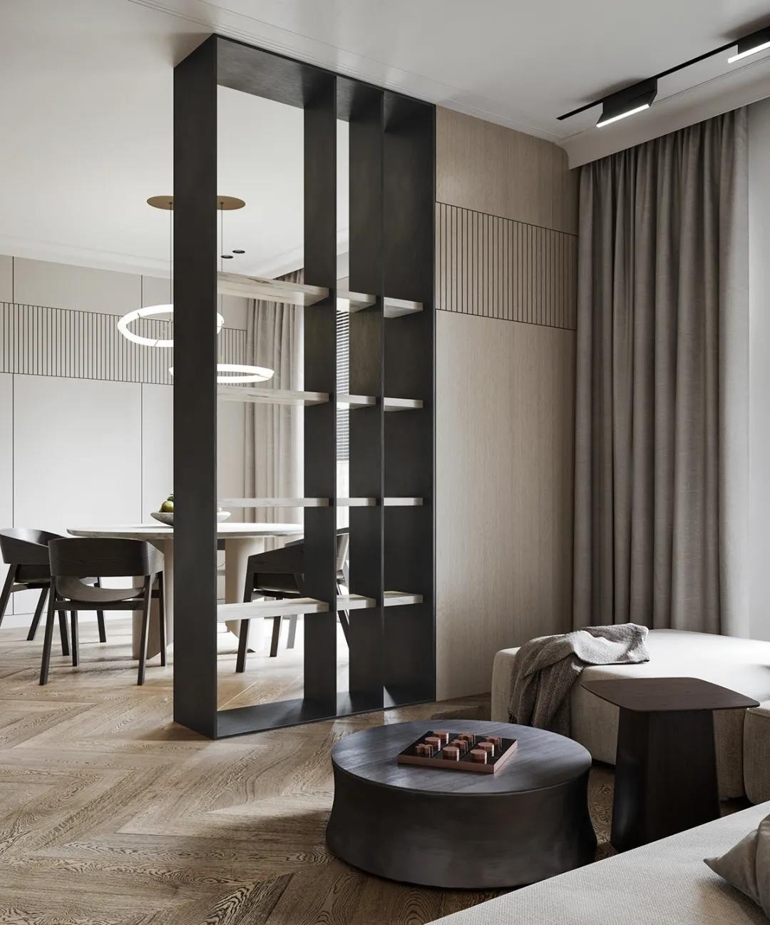 简洁的配色营造自然、放松的氛围。用灰白色搭配原木色勾勒出轮廓,将冷静的色调融入城市的时尚中,回归生活的自然和朴实