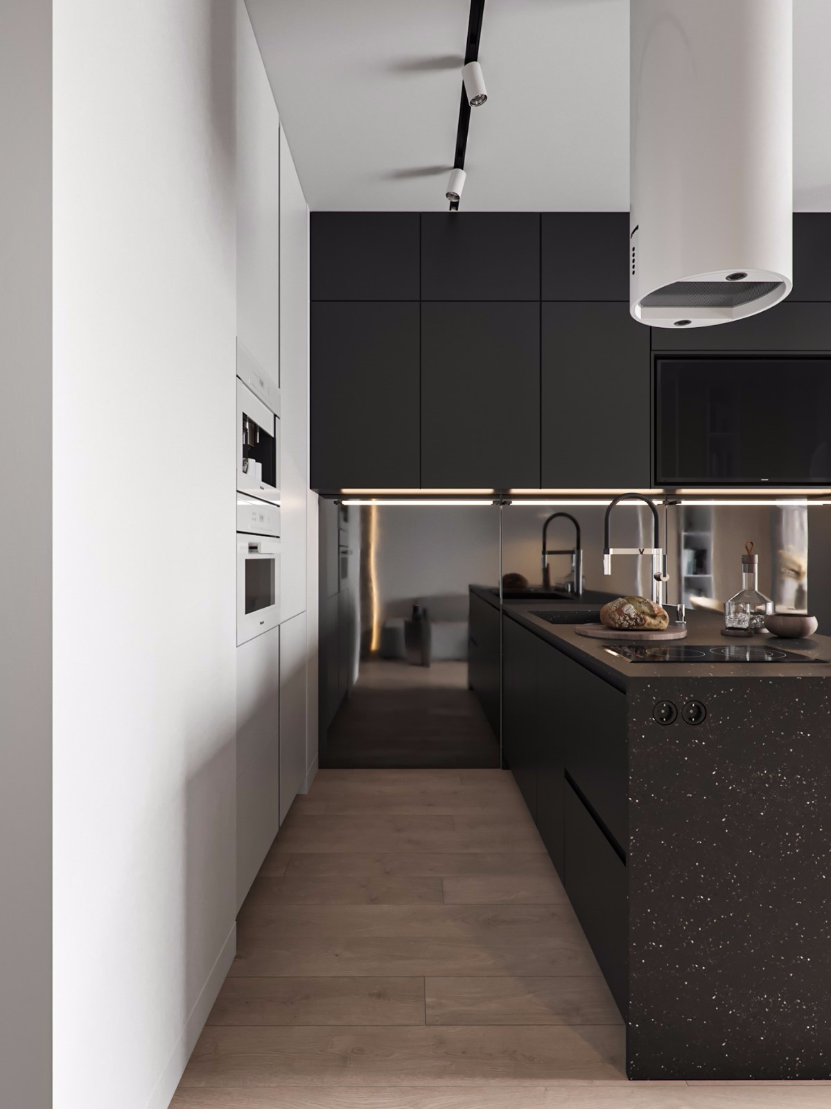 保持原有格局,在此基础上,进行精细化设计,巧妙运用空间,获得了业主的认可。平面规划方面,在有限的公共区域将客厅餐厅厨房置于一个空间当中,没有刻意强化客厅,只是做了较好的均衡。设计格调采用极简白色与清爽自然木饰面搭配,给小小的居室带来足够的明亮感。家具尺寸特意选择尺寸较小,较为简洁的款式,巧用重点照明与辅助照明,营造空间层次感。