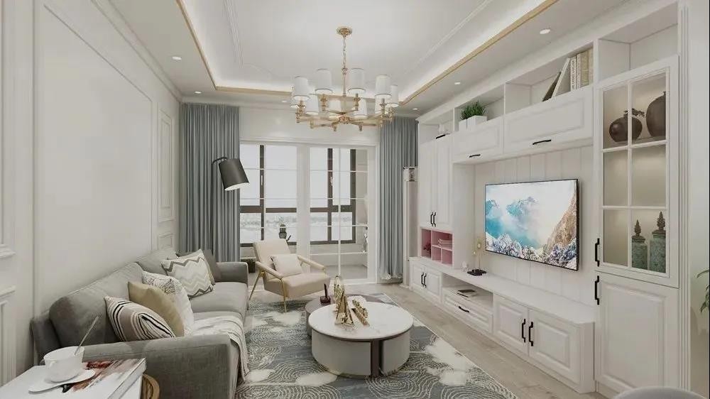 客厅的设计化繁从简,用石膏线打造沙发背景墙,实现欧式的雅致,“回”字型整墙电视柜,不同形式设计具有层次感!