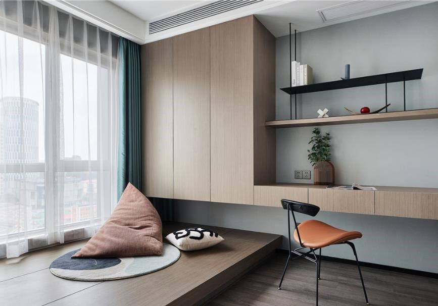 整面简约大方的书房柜体造型 榻榻米功能满足生活储物需求 让小空间更具功能化