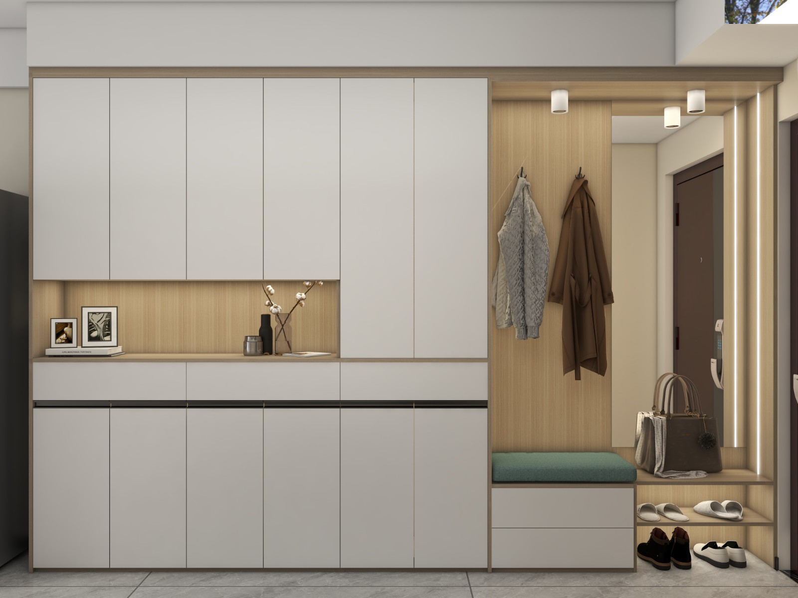 玄关鞋柜设计新颖独特,是整个空间的聚光点