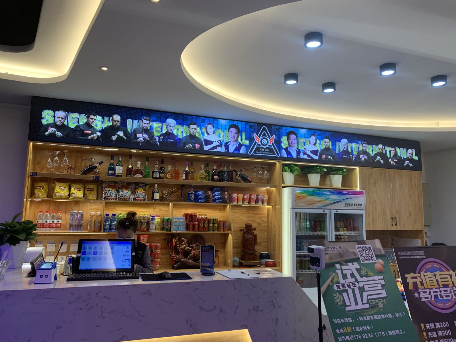宽敞的台球场所,对于装修要求很高,灯光方面一定要明亮。