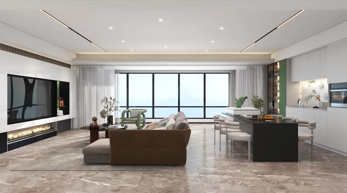 客厅餐厅空间借用,阔绰空间感,生活起居自在穿行;