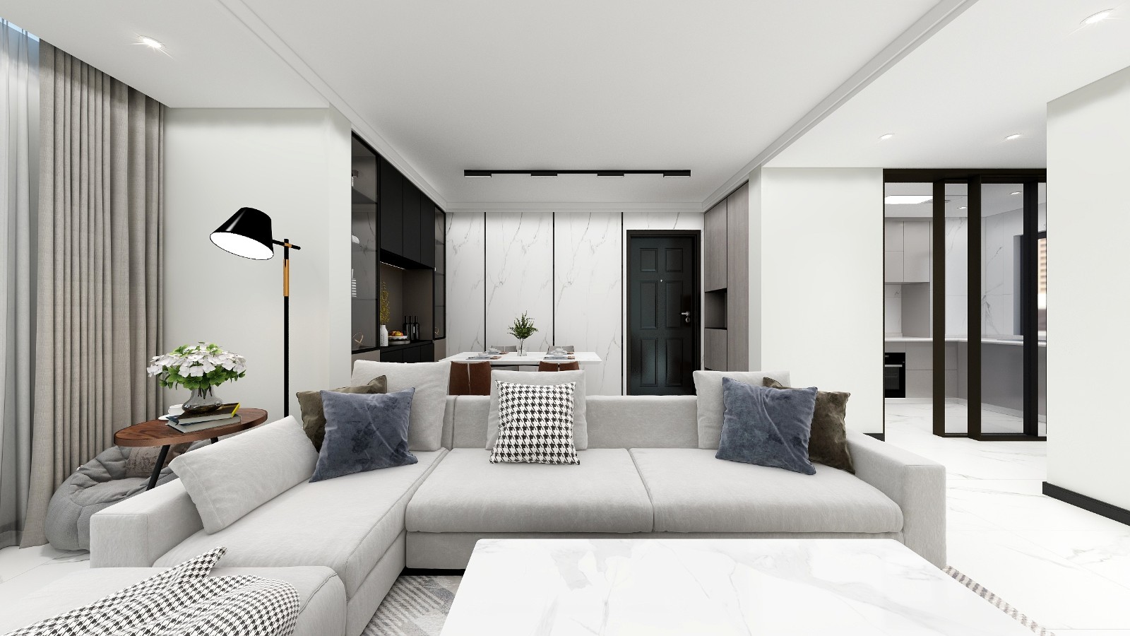 几件白色系列客厅搭配4公分踢脚线和极简超高门