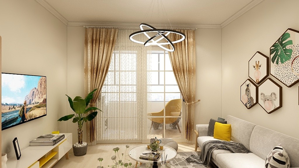 原木色地板,休闲居家,家庭聚会地方,忙碌***休息看电影。