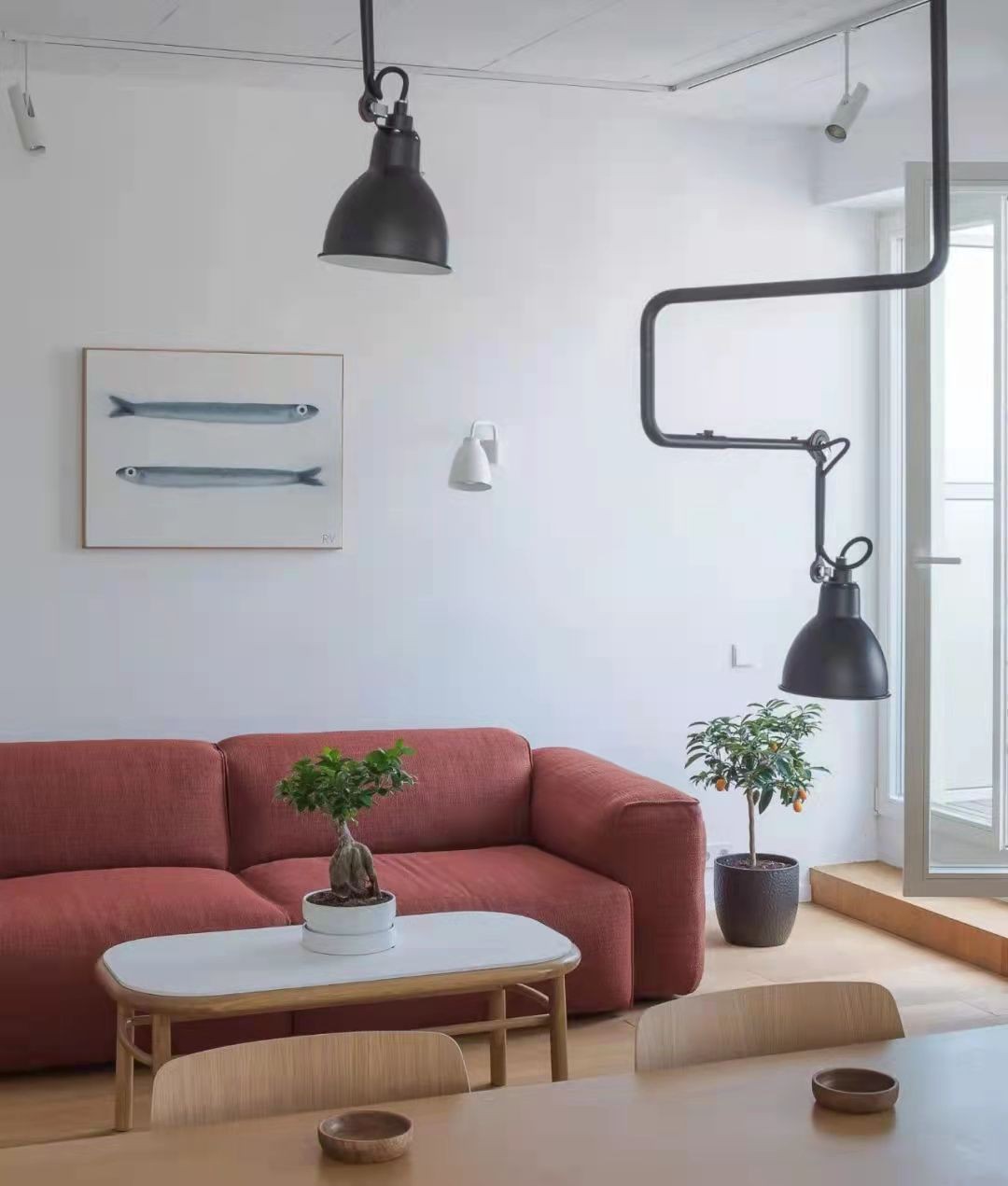 客餐厅和卧榻休息区之间用磨砂玻璃门隔断