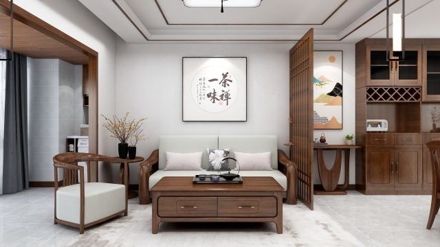 从阳台视角看餐厅隔断的作用酒很明显了,餐厅上方挂画让空房间显得不单调