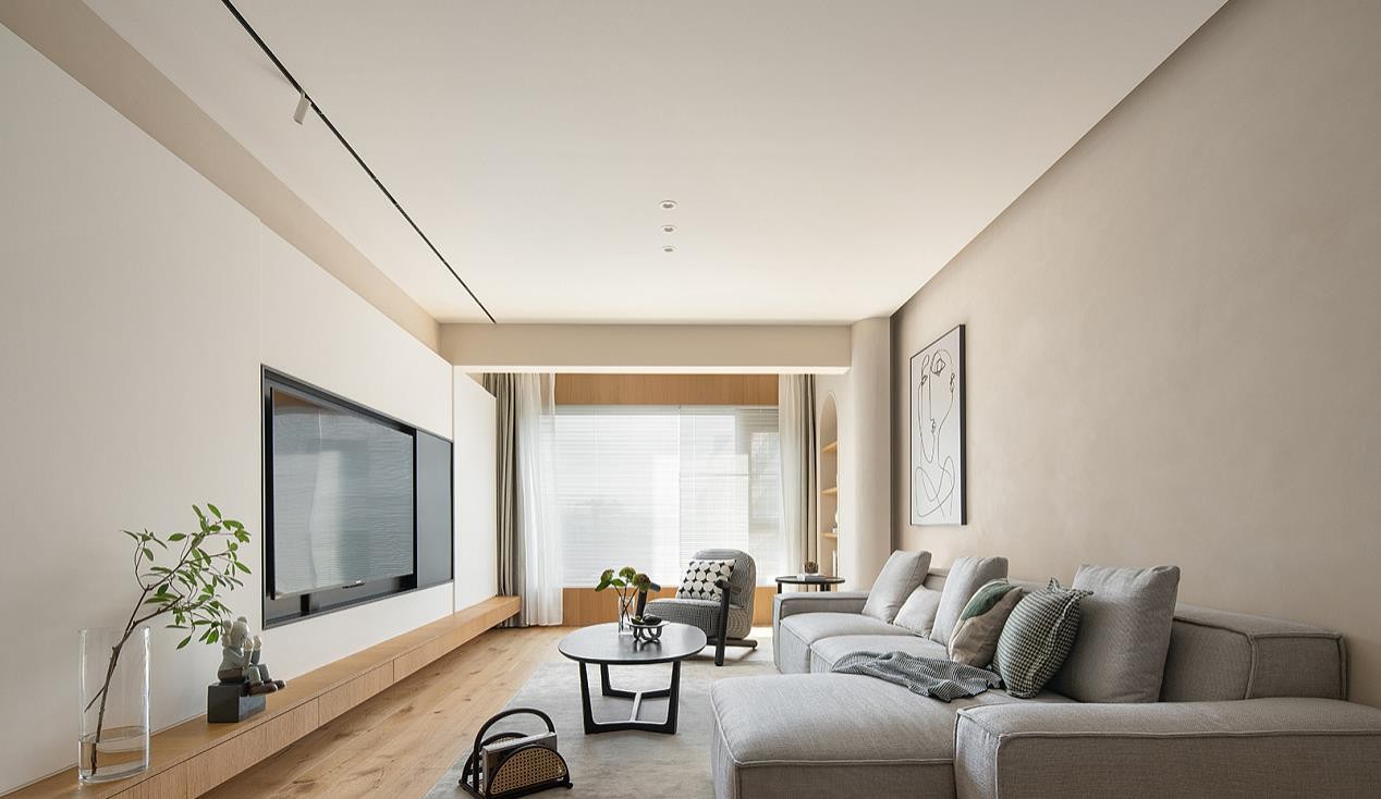 轻轻转身,便与不期而遇的温柔相撞,大体量的木质背景,以其本真之姿,给予客厅空间自然而又富有质感的底色。