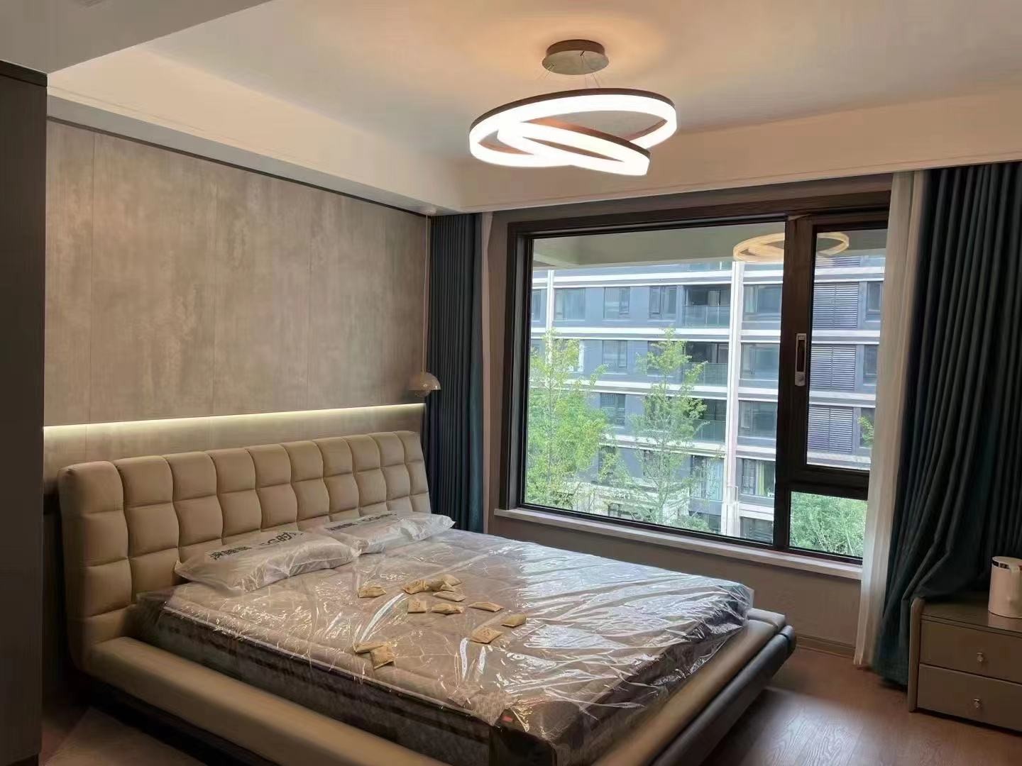 卧室延续客厅的整体色调,再加以温暖的蓝色点缀,在暖色系中寻找到了我们内心舒适的节奏,诠释了经典的品味。
