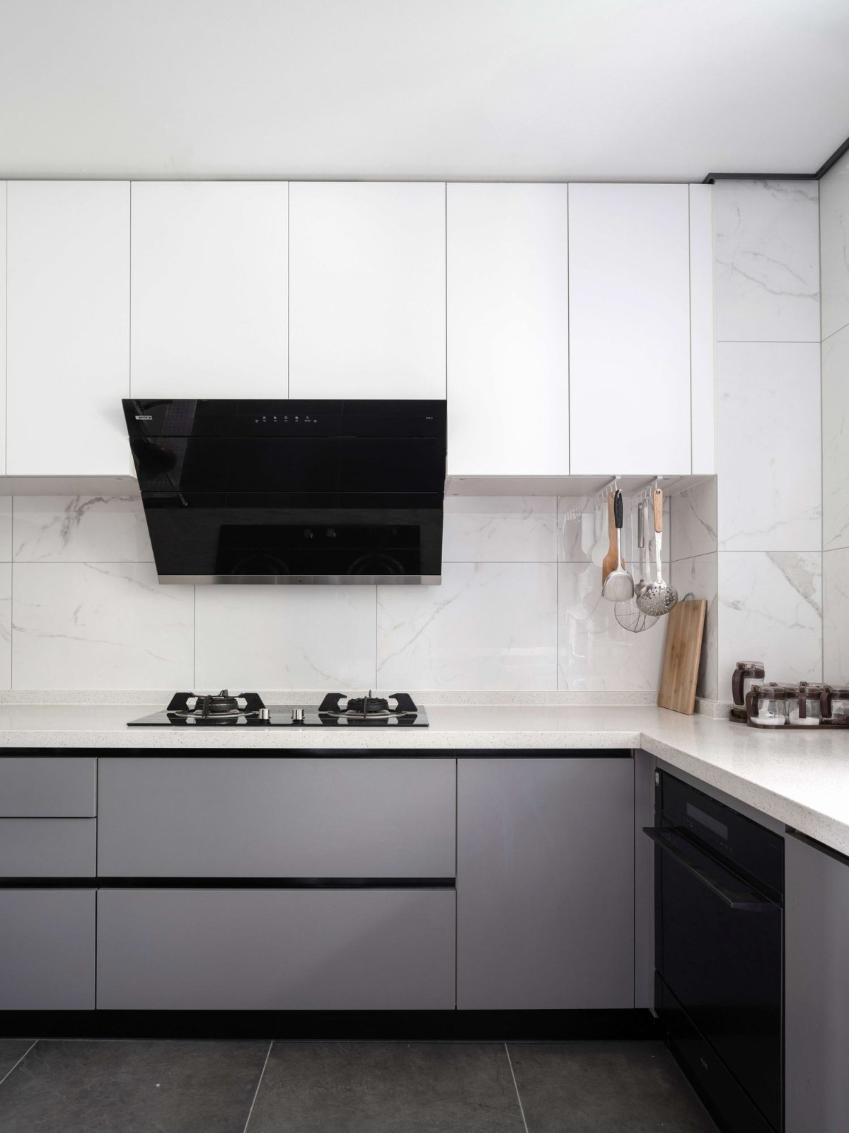 橱柜占据了三面墙壁达到***的储存效果,满足了屋主的收纳需求。