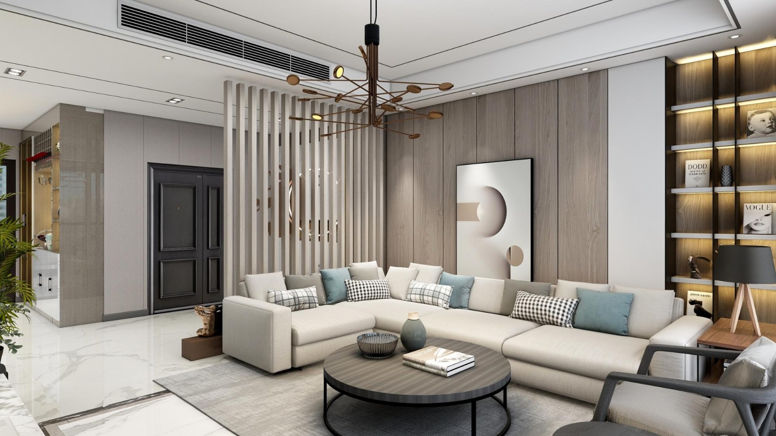 墙板背景加书架一体,装饰又能利用