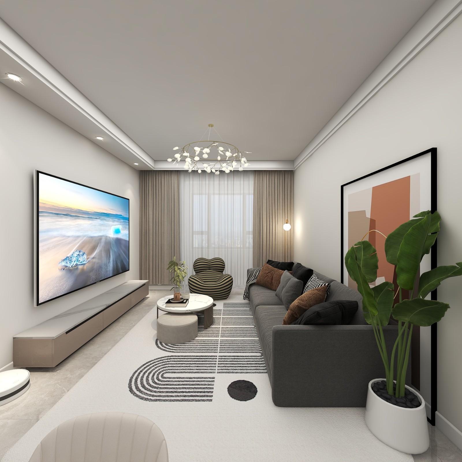 客厅采用白色墙面,考虑放投影