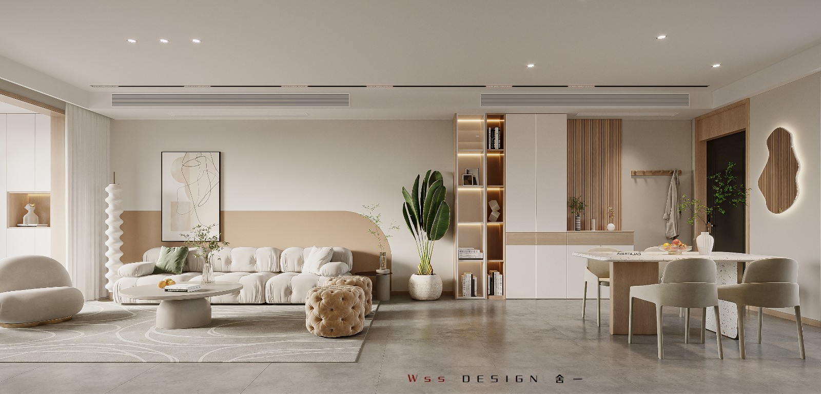 根据屋主的需求,我们从功能和美学的角度审视房屋的每个角落元素,在客厅设置了整面的开放格书柜,既有收纳又有展示的空间,根据喜好放置书籍、艺术摆件等,随时保持家的新鲜感。