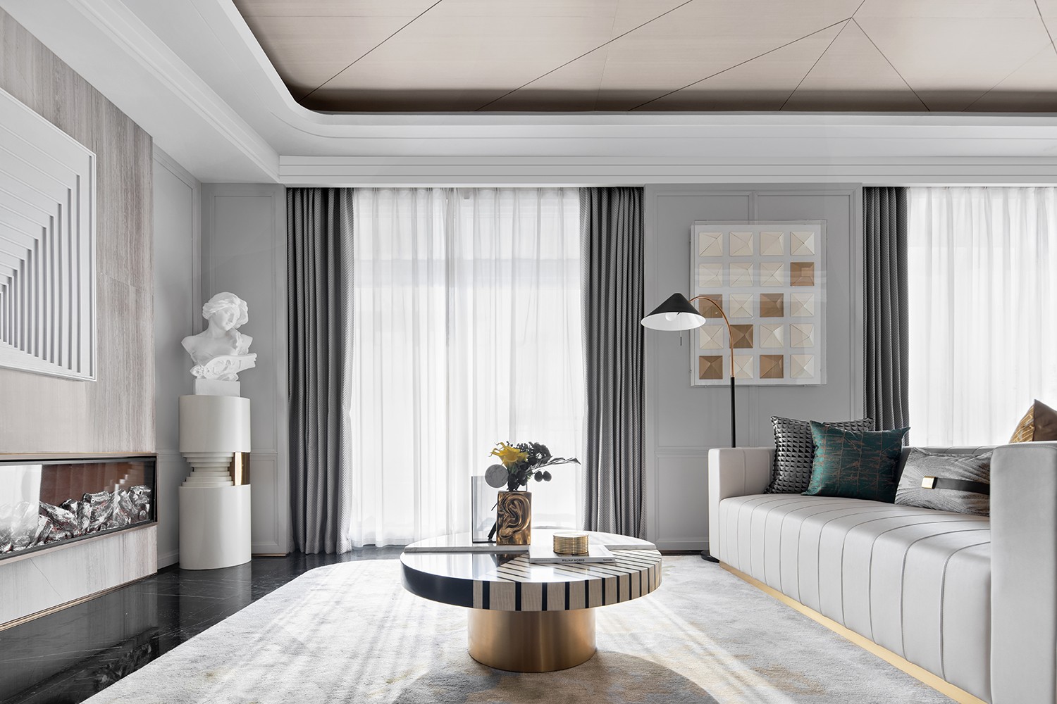 有一些被黑夜遮蔽的星星,在14世纪重新闪耀。人们重燃起对自由的赤忱,再度将古希腊的哲学与美学奉上神坛。而正如其时古典主义对理想之美的细腻刻画,通达宽敞的客厅整体色彩淡雅,与角落温婉高雅的琴女雕塑相得益彰。