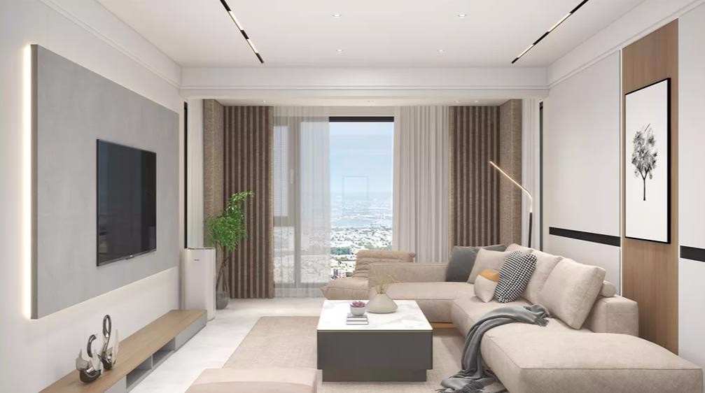 客厅墙面大体采用白色为主,增加反光率,提升客厅的明亮度