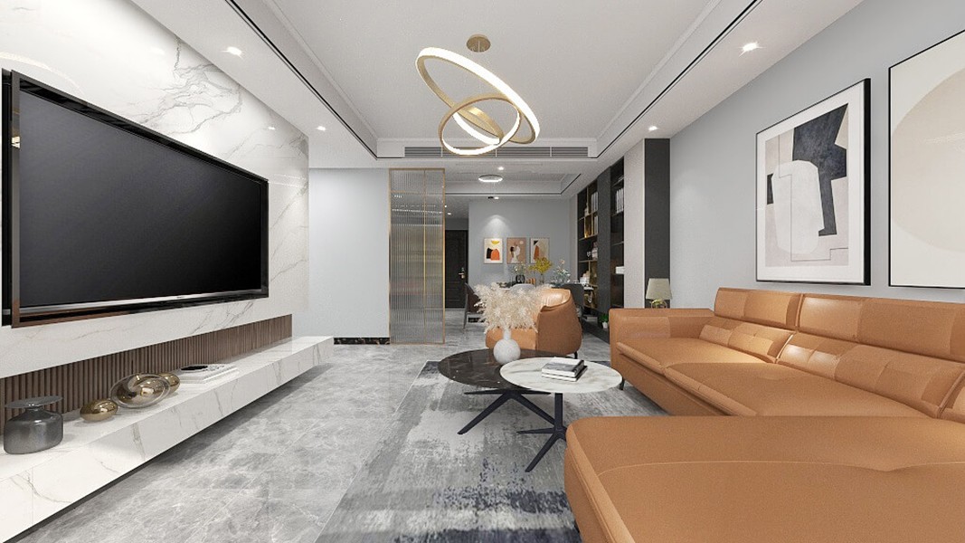 橙色沙发与满满的轻奢摆件细节点缀,让空间多了几分活泼与清新,简约而不单调。