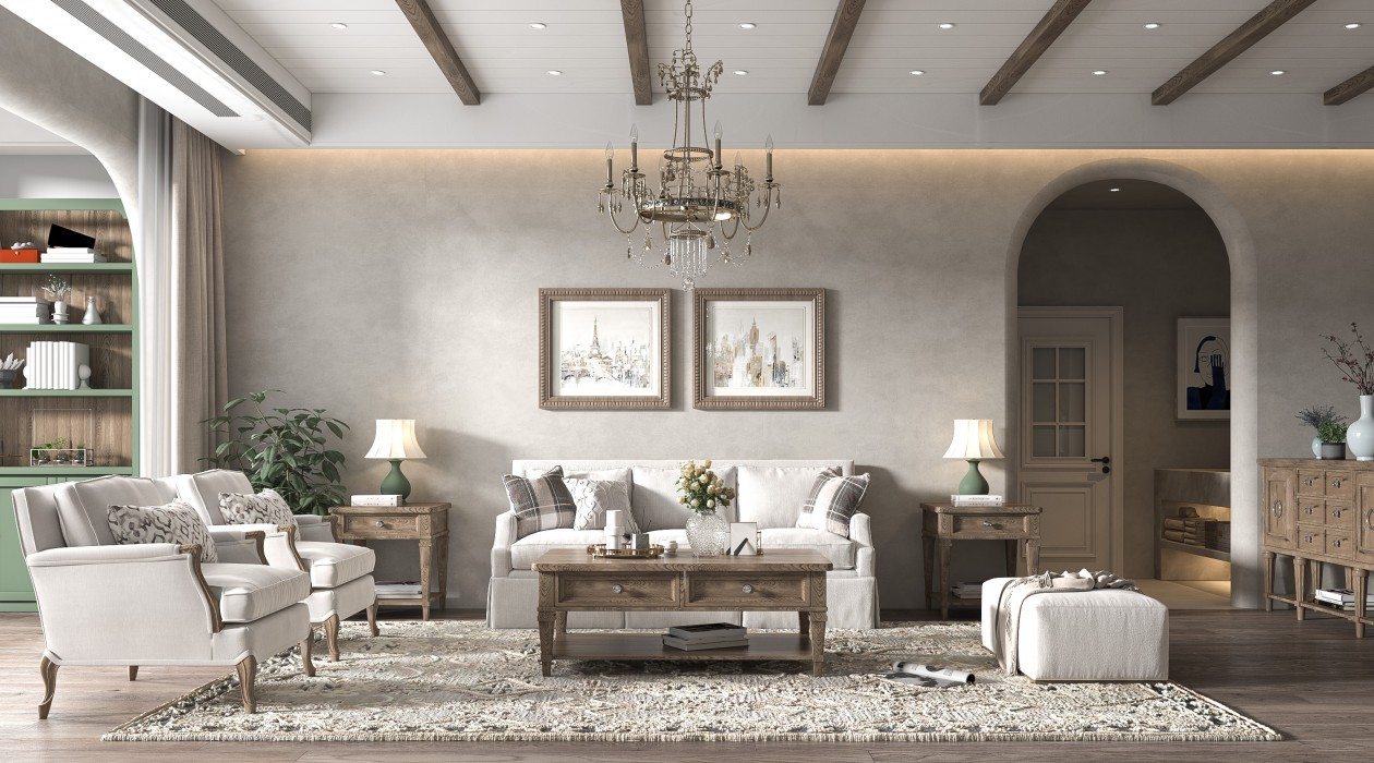 客厅主要以白色调为主,墙面以暖色调为主,整体效果以优雅为主