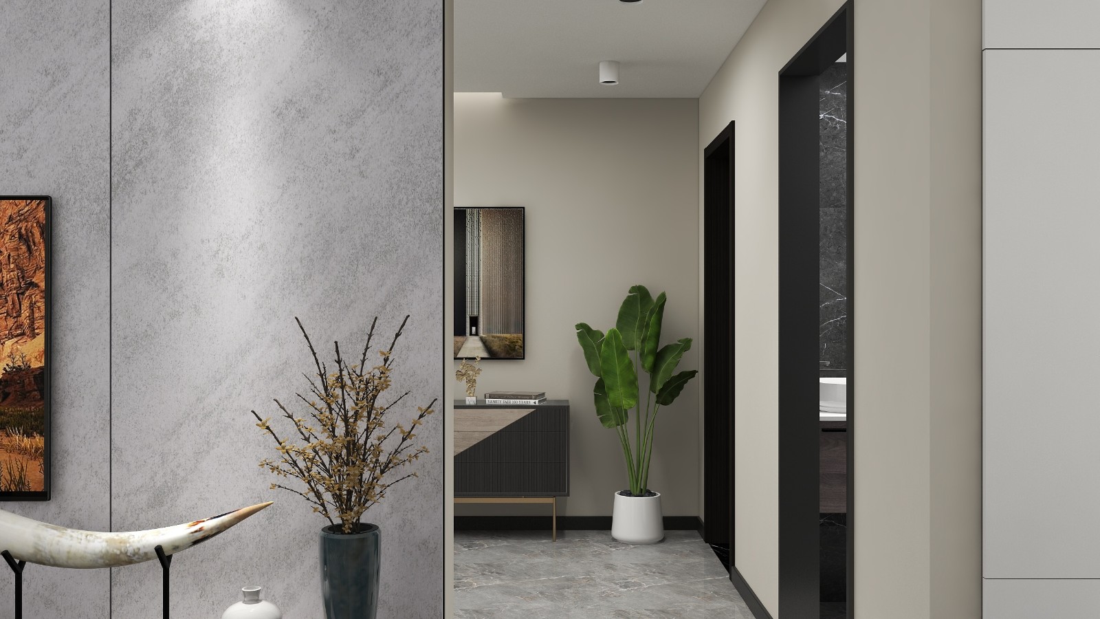 现代简约,其中浴室门的位置