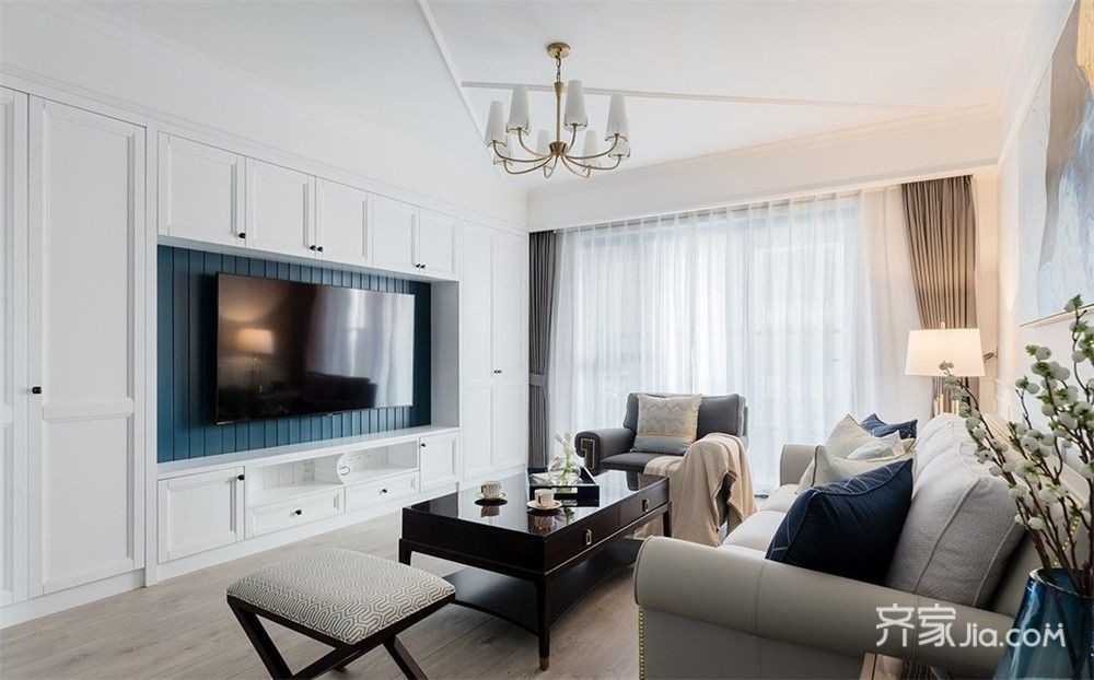 本案以白色作为主色然后在不同的空间点缀不一样的色彩,如蓝色、褐色令整体空间营造出一种优雅迷人的氛围。