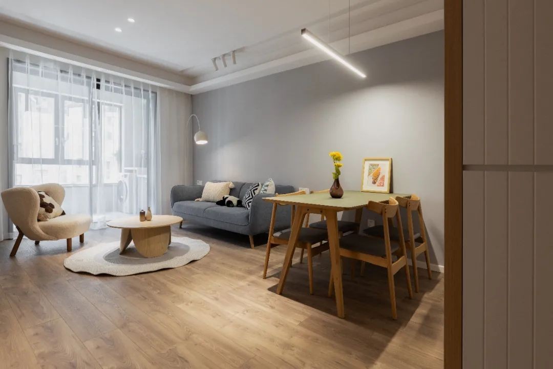 案例来源于一对新婚小夫妻,男主角喜欢看书,女主角偶尔会在家办公,两人都偏向于北欧日式风格,喜欢原木色,温馨实用就好。