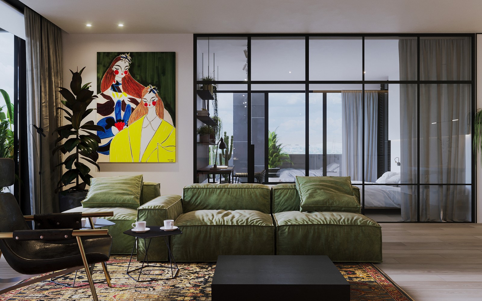 不用纯色而多使用中性色进行柔和过渡,即使用黑白灰营造强烈效果,也总有稳定空间的元素打破它的视觉膨胀感,比如用素色家具或中性色软装来压制。