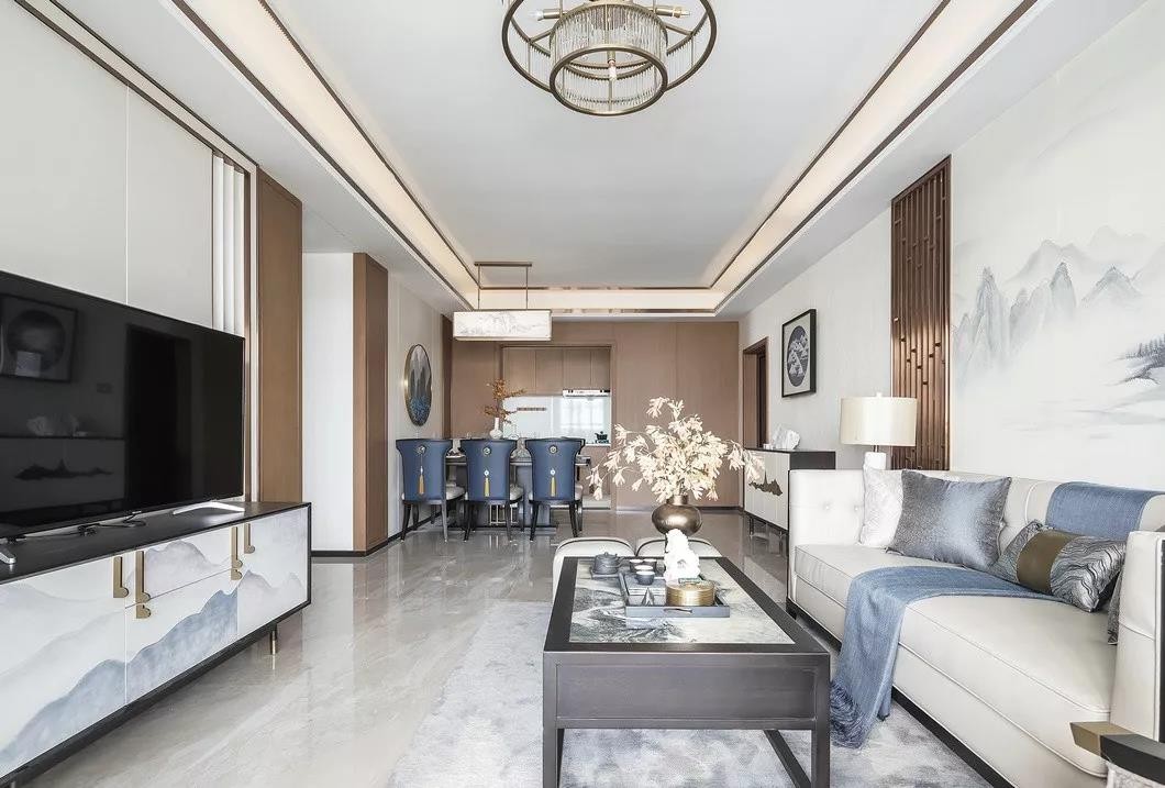 水墨画的背景,宁静致远,线条简洁,装饰品德大方、简洁,让空间舒服而优雅。阳光透过纱帘,更显温婉