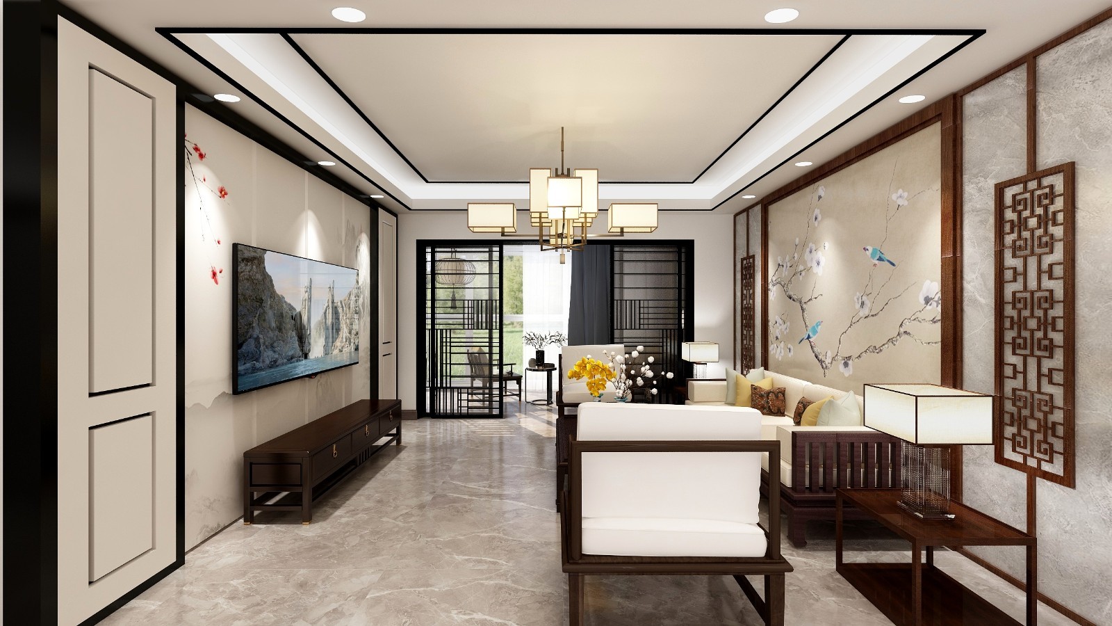 新中式客厅、线条点缀、突出层次感