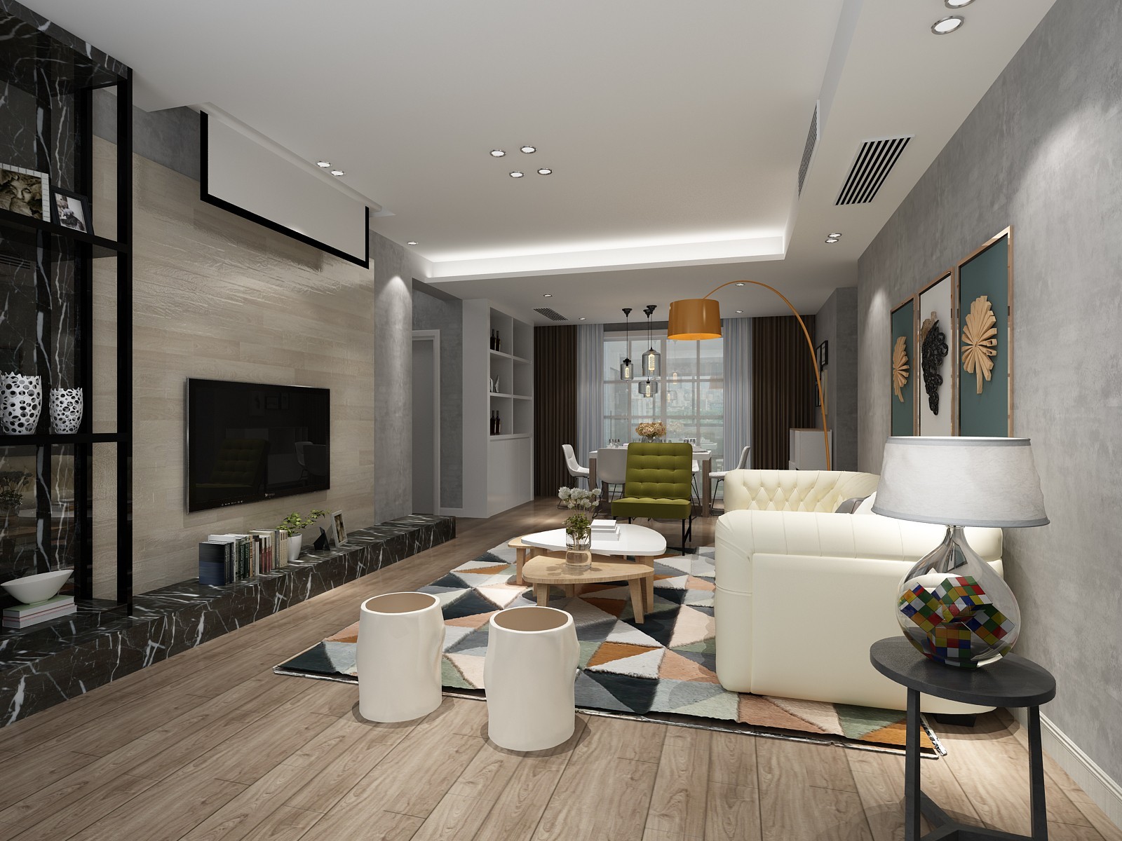 本设计方案属于现代风格。简约但不简单。以客厅为中心的整个空间用现代典型元素搭配造型,木地板上墙的设计,美观、大气的电视墙与各类精美饰品交相辉映......这样的居室空间每一个细节都诠释着什么是温馨与舒适,什么是浪漫......