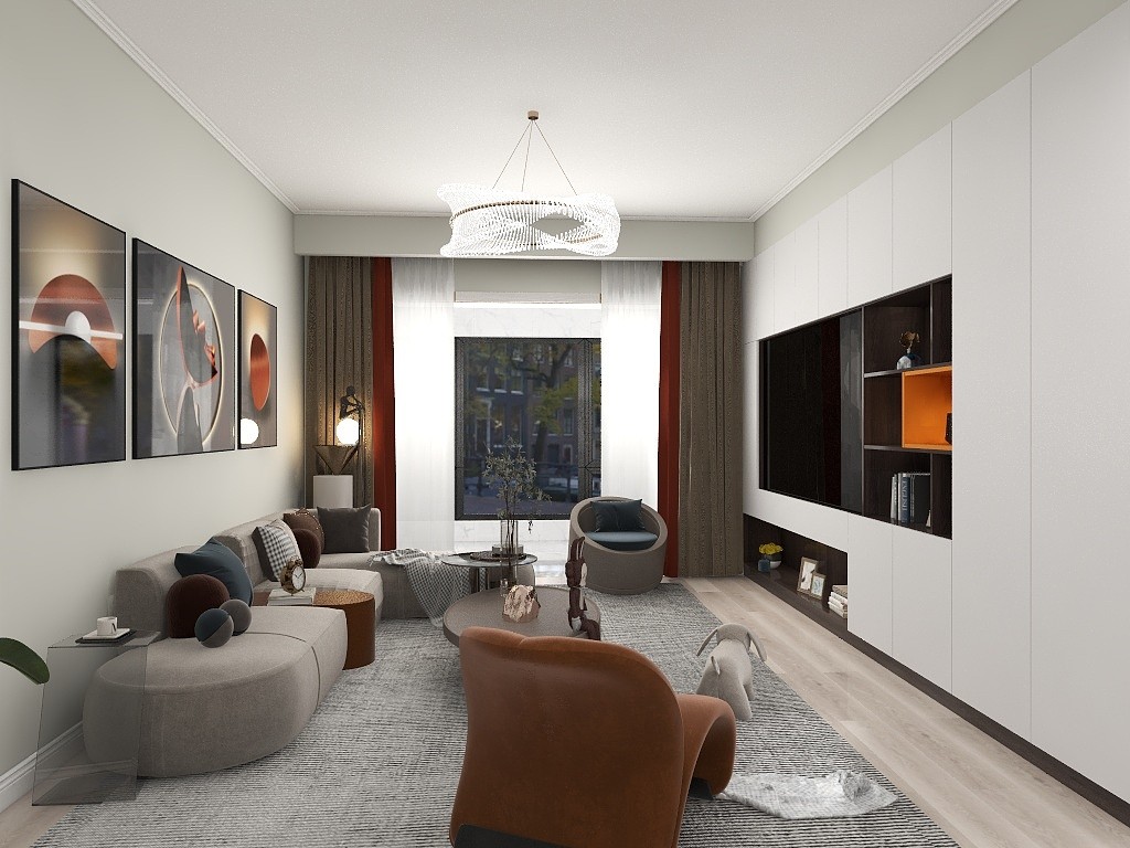 电视背景墙以收纳为主,打造一整面的收纳柜,美观实用不占地。