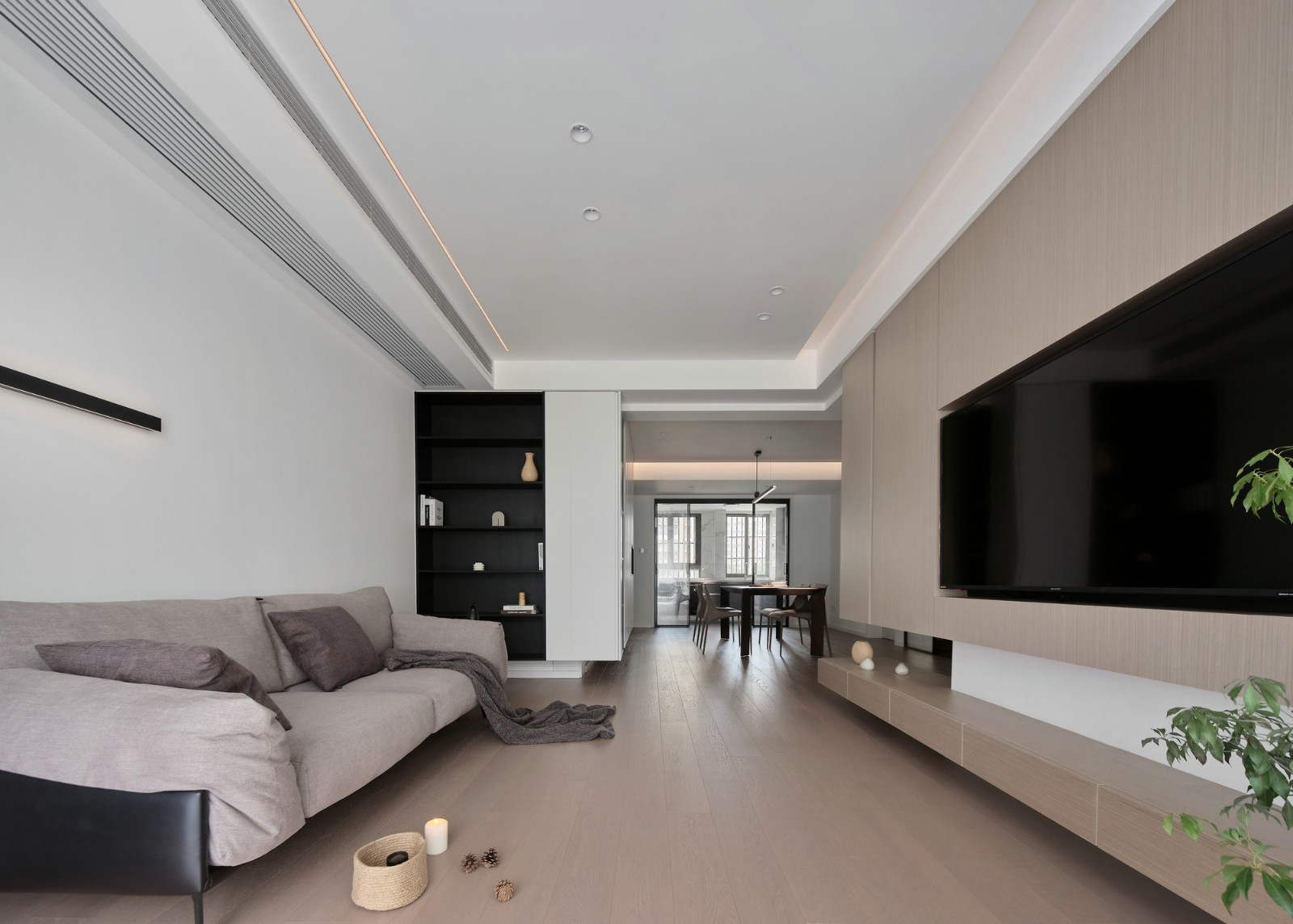 纯白沙发背景墙,采用线型壁灯,流露层次感。越是简洁的空间,适宜的光线点缀,为颜值加分,还能营造出一种光影特有的温馨感。