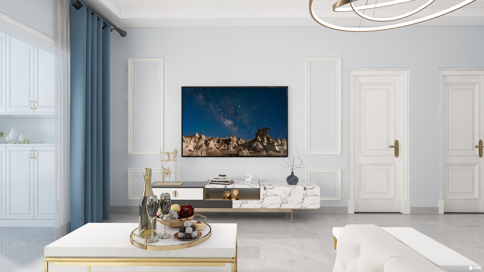 欧式的柜门搭配简约轻奢的书柜,再搭配欧式的房门,风格更为明显。