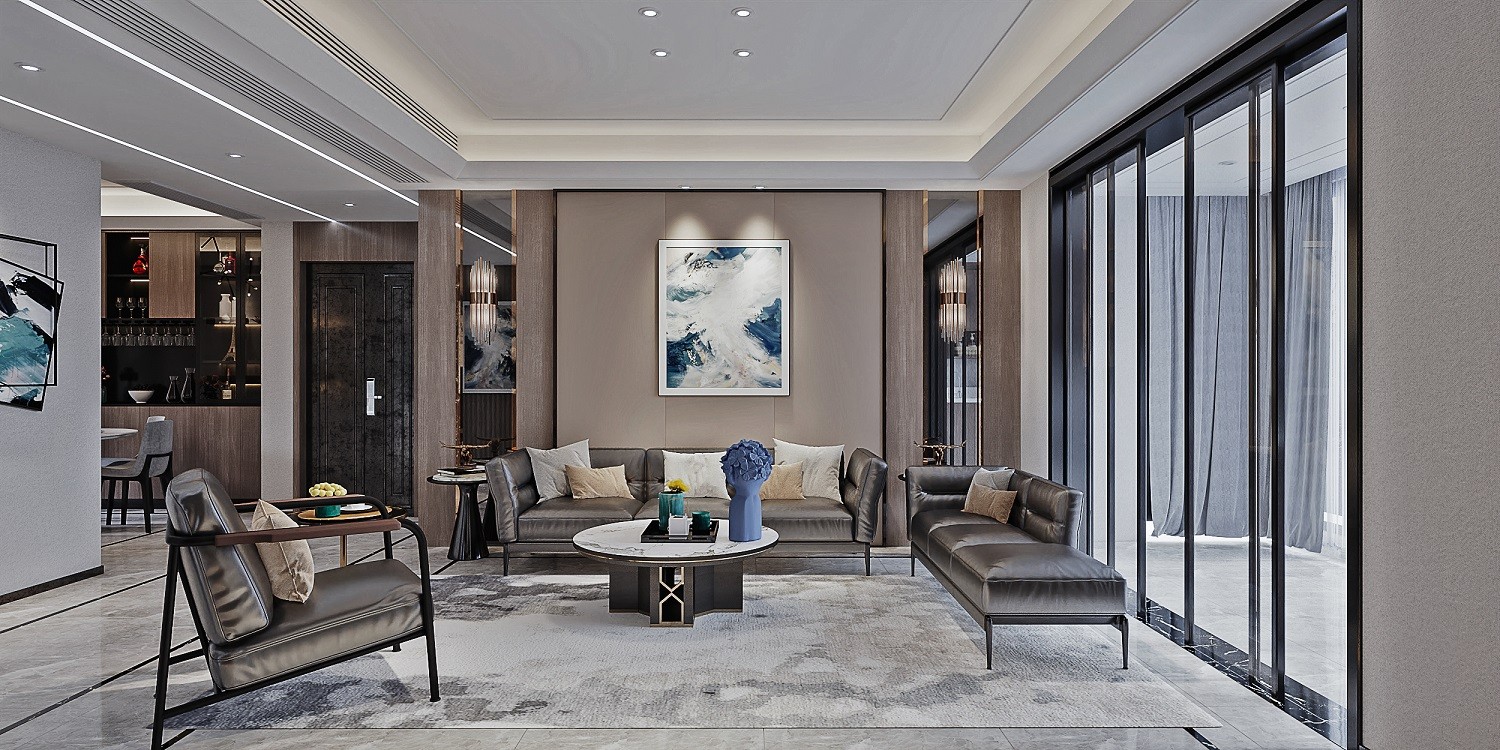 客户夫妇四十多岁,一个儿子上高中,需要2个卧室,独立衣帽间,重点需要休闲娱乐空间(麻将室),客户不常住。 此户型属于南北通透,南边视野较为开阔,客户不常住,家庭聚会较多,因此把娱乐空间放在南边和客餐厅连为一体,使得进门后的***视觉有了纵深感, 设计风格上倾向轻奢新中式,多采用无主灯设计,色调上以黑白灰为主,既有时尚感又不失庄重大气。