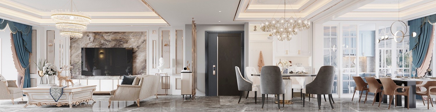 1、在总体设计上,摒弃传统法式的繁复、冗杂的装饰造型与甜腻的色泽,转而用经典轴线、对称布局的方式,结合淡雅的空间色调或几何线条与典雅时尚的陈设软装,打造出一个法式轻奢主义的空间格调。2、在色调运用上,以浅色为主色调,用少许亮色进行点缀。在视觉感知上,浅色与深色相比,是令人觉得较为柔和、舒适的色调,而少许亮色的点缀,使空间在和谐统一的基础上更具视觉层次感,为空间平添几许温度与生气。3、在造型选择
