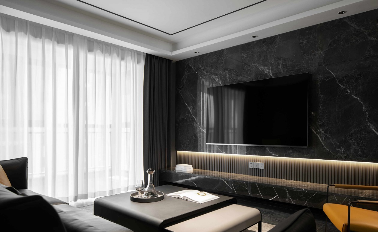 借助灯光与色彩的关系,黑色系和光线烘托出的强烈的对比,赋予了大面积深色空间予生气,灯光所照之处,皆是焦点。