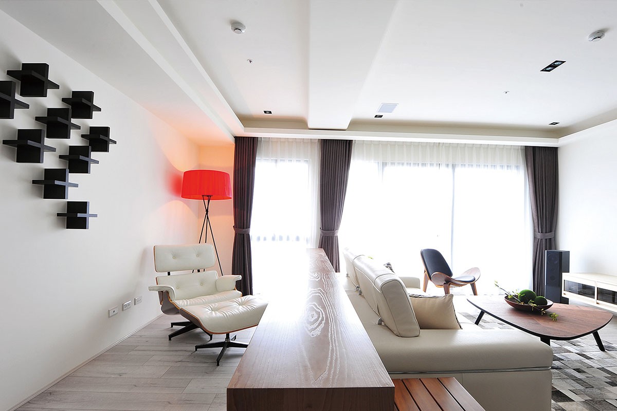 墙角放置一个红色落地灯,给家里增添了一抹浓烈的色彩,不会显得太过于压抑——达州装修公司紫庭装饰