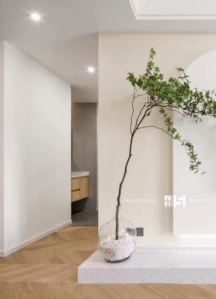 木地板和电视柜以及床背景的木饰面相互呼应,柔和又温馨