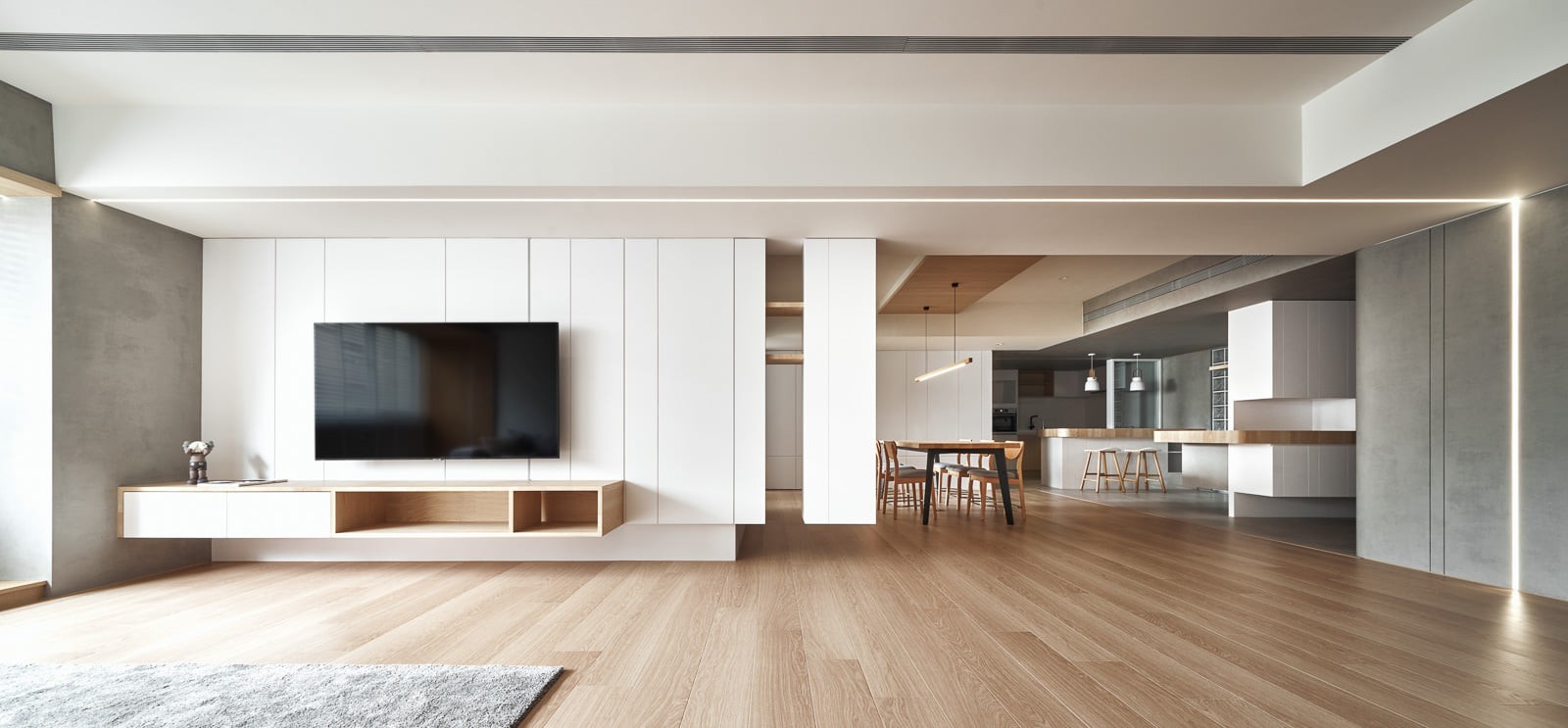 厨房和餐桌利用木色增加感觉