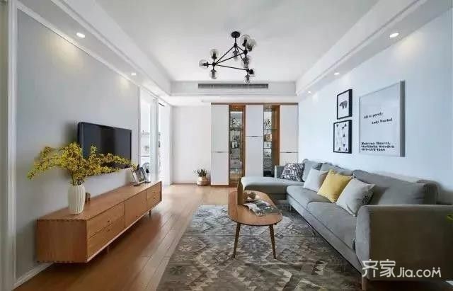 客餐厅采光差,电视墙加扇室内窗,漂亮!以极简状态的北欧风格装修搭配,在简约与原木质感的结合下,通过时尚舒适的软装搭配,打造出一个惬意年轻的氛围。