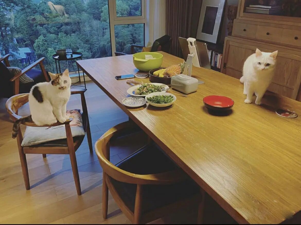 多人可能都会担心做开放式的厨房,会受到油烟污染,但是实际上只要是靠谱的抽油烟机,都不会有什么问题。当然了,用过的厨房尽量收拾干净。家里的猫咪,太可爱了,