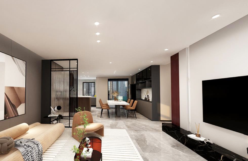 客厅摒弃多余复杂的色彩,以白色为原点,运用材质光影的变化,注入生活的温情,打造细腻动人的治愈系情调。