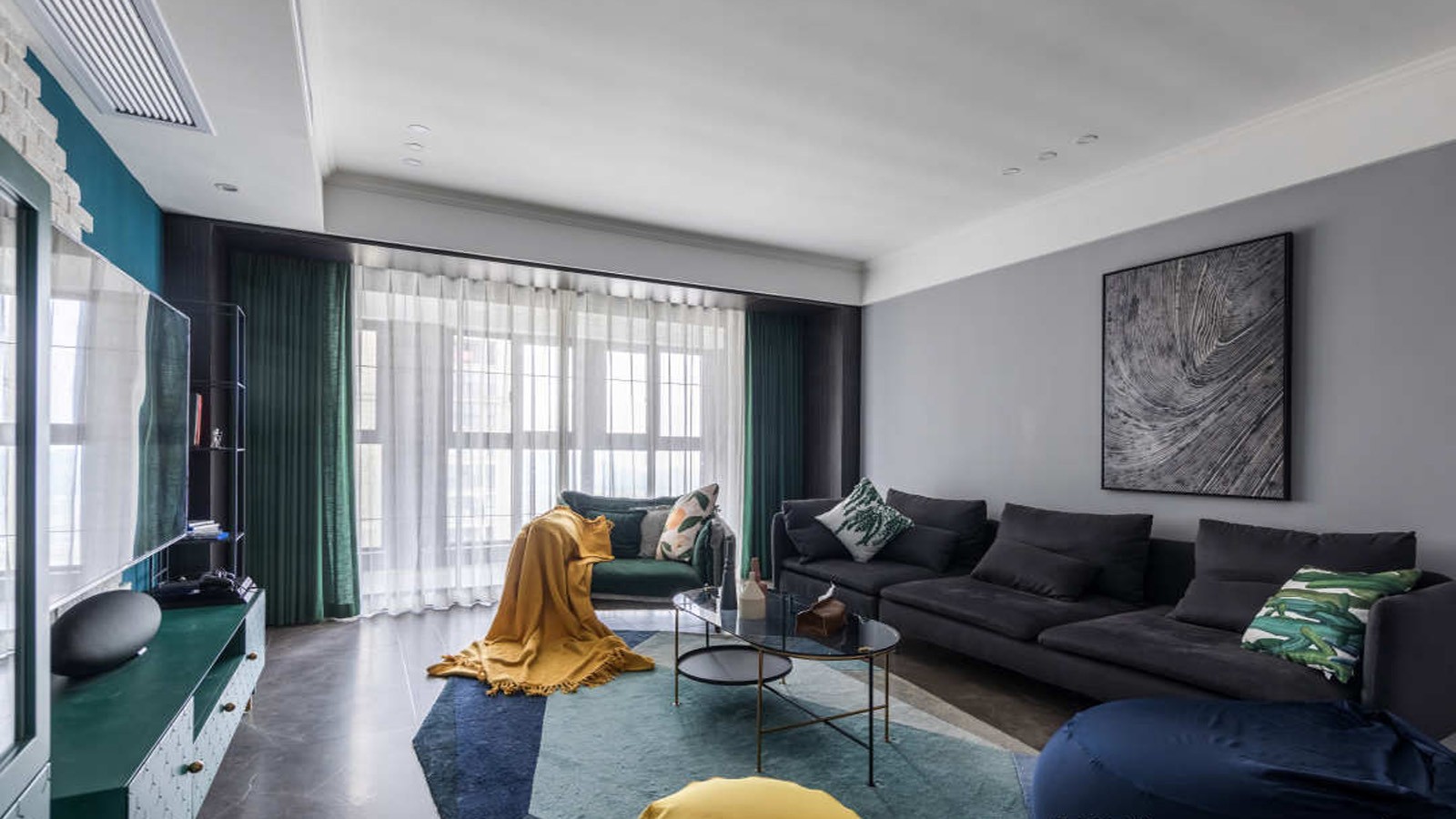 客厅、大大的落地窗,让光线无阻挡的照进室内,在轻盈的窗纱映衬下,让客厅多了一份悠闲散漫。