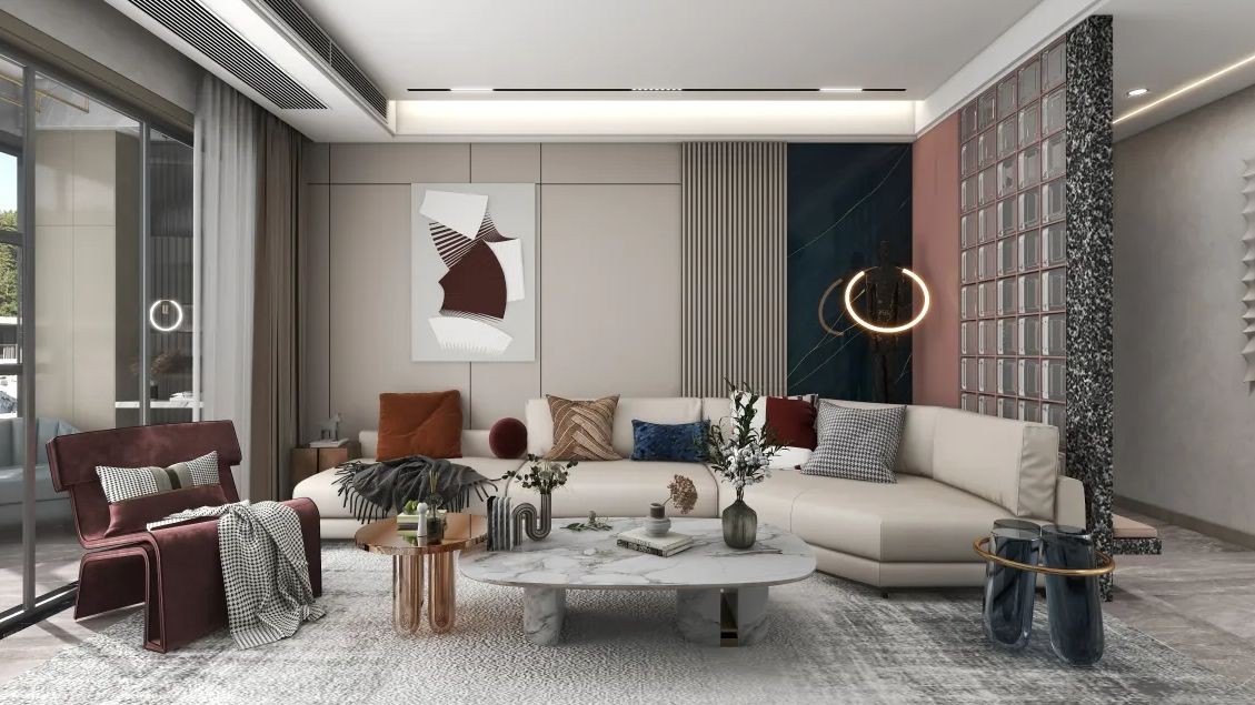 现代轻奢,轻于形,奢于质,造型轻盈不厚重,材质奢华有细节,并用撞色和跳色让整体更有生机。