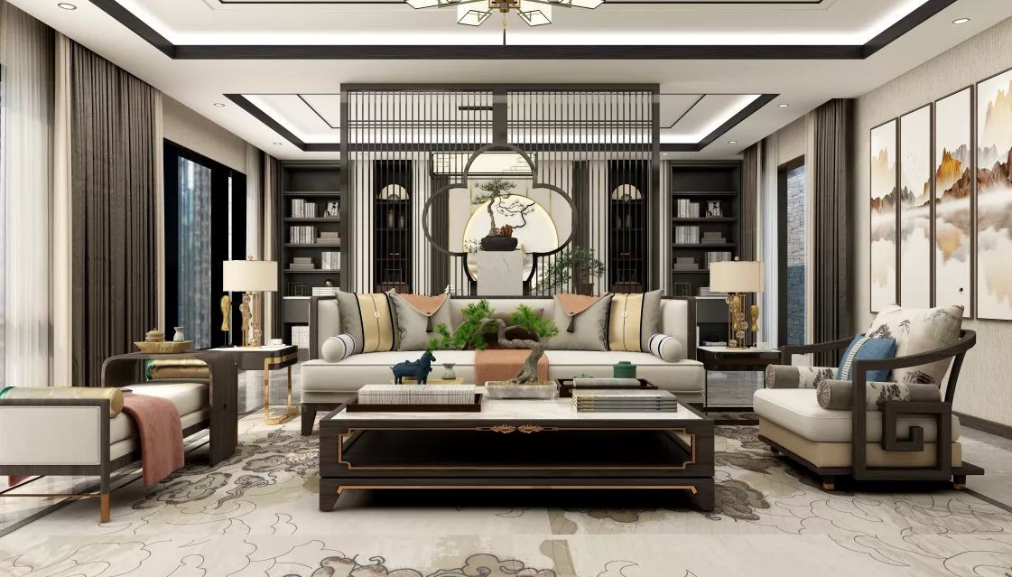 背景墙采用新中式风格。