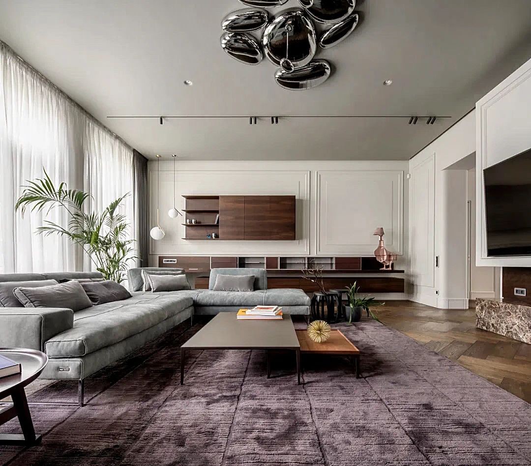客厅安装了燃气壁炉,以强调空间的优雅和舒适。云杉地板也是如此,为公寓增添了温暖迷人的气息。整个地方的细线和门口的圆角都被用来突出标志性的 Replus 局设计。