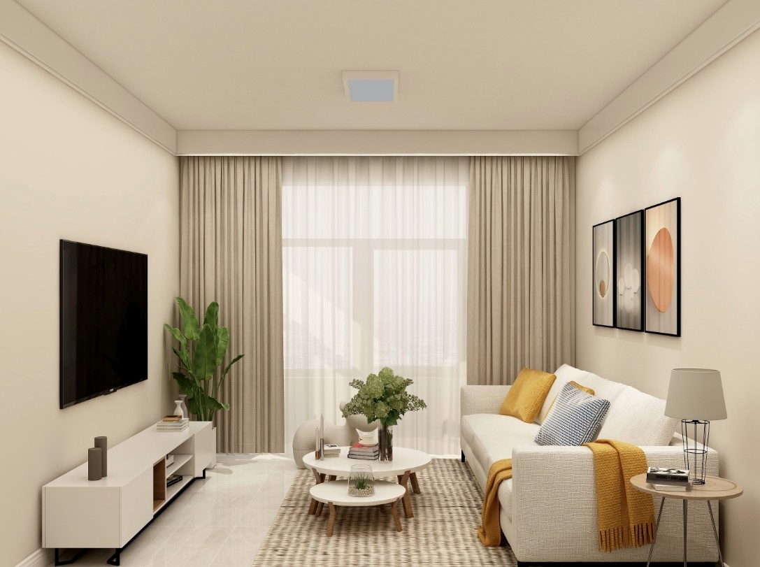 北向客厅,颜色采用的暖色,浅色