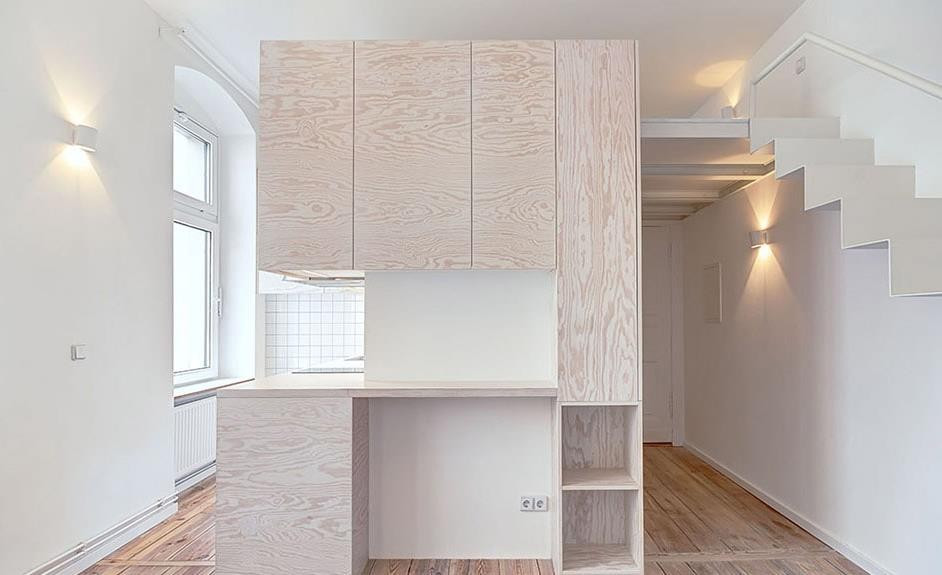 布局虽然是极端的小,但厨房,浴室,卧室,客厅却各就各位,井井有条