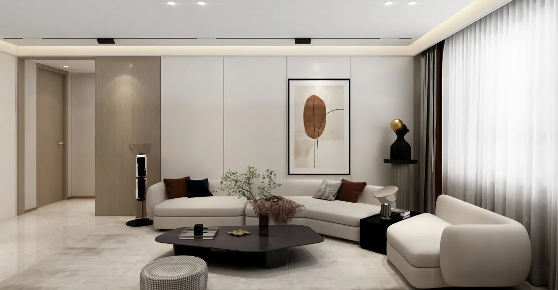 客厅做无主灯,偏米灰色调