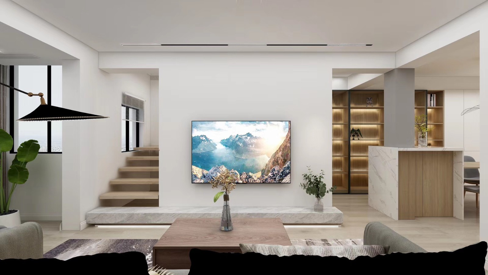 餐厅 ,调整了楼梯间的位置 将楼梯通道和客厅电视墙融合在了一起